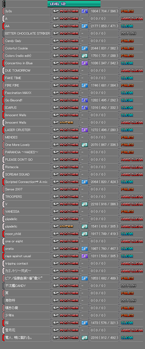 stress(FINAL/済)、R3(5th)、THE EARTH LIGHT(APPEND5th)。まあそれだけなんだけども。それ